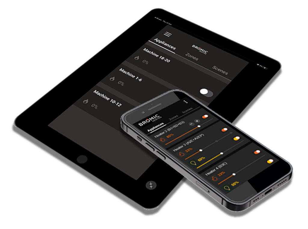 Ottieni il massimo dai riscaldatori Bromic. I nostri controlli Affinity Smart-Heat™ si collegano tramite wi-fi, bluetooth o connessione ethernet (opzionale) alla nostra nuova app Bromic Heating, offrendoti la possibilità di gestire e personalizzare il tuo comfort con un tocco:
